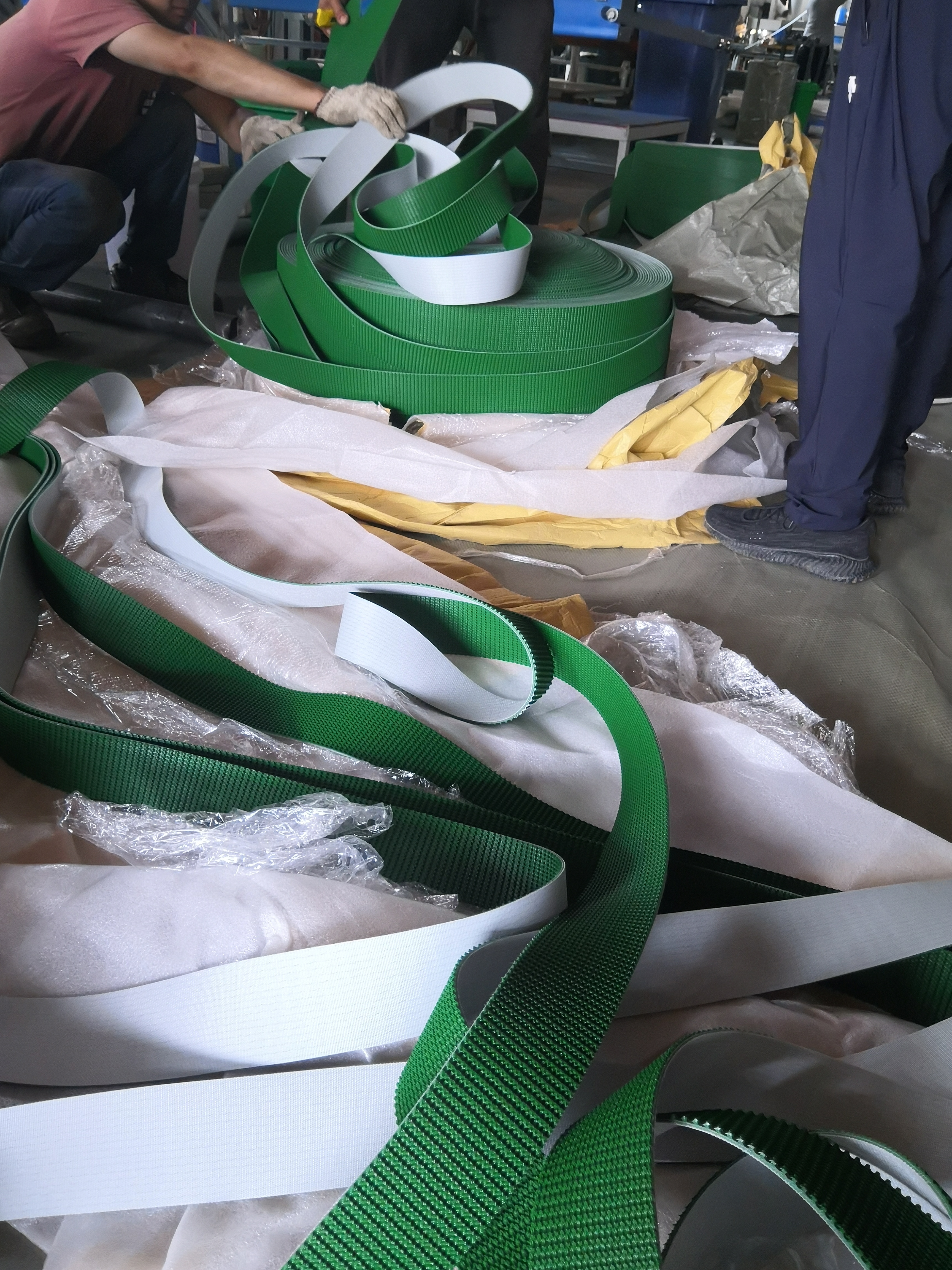 De PVC-transportband is zorgvuldig verpakt in rollen en kartonnen, met pallets beschikbaar voor verzending.Elk gordel wordt in beschermend materiaal gewikkeld en in een stevige verpakking geplaatst om schade tijdens het vervoer te voorkomenWe geven informatie voor alle zendingen.